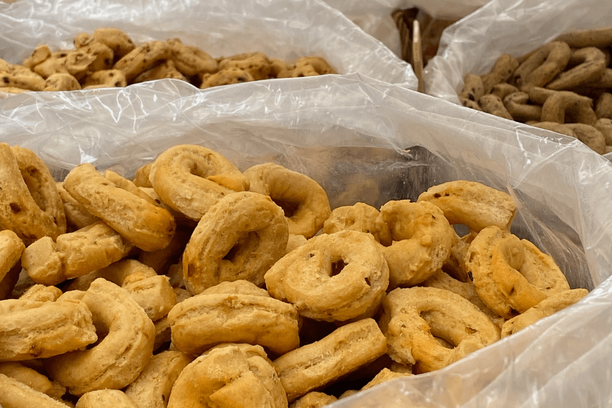 Taralli: I taralli sono degli irresistibili biscotti salati che si presentano in diverse varianti, dai classici al finocchio, all’olio d’oliva o al peperoncino. Perfetti da sgranocchiare come snack o da accompagnare con un buon bicchiere di vino pugliese.